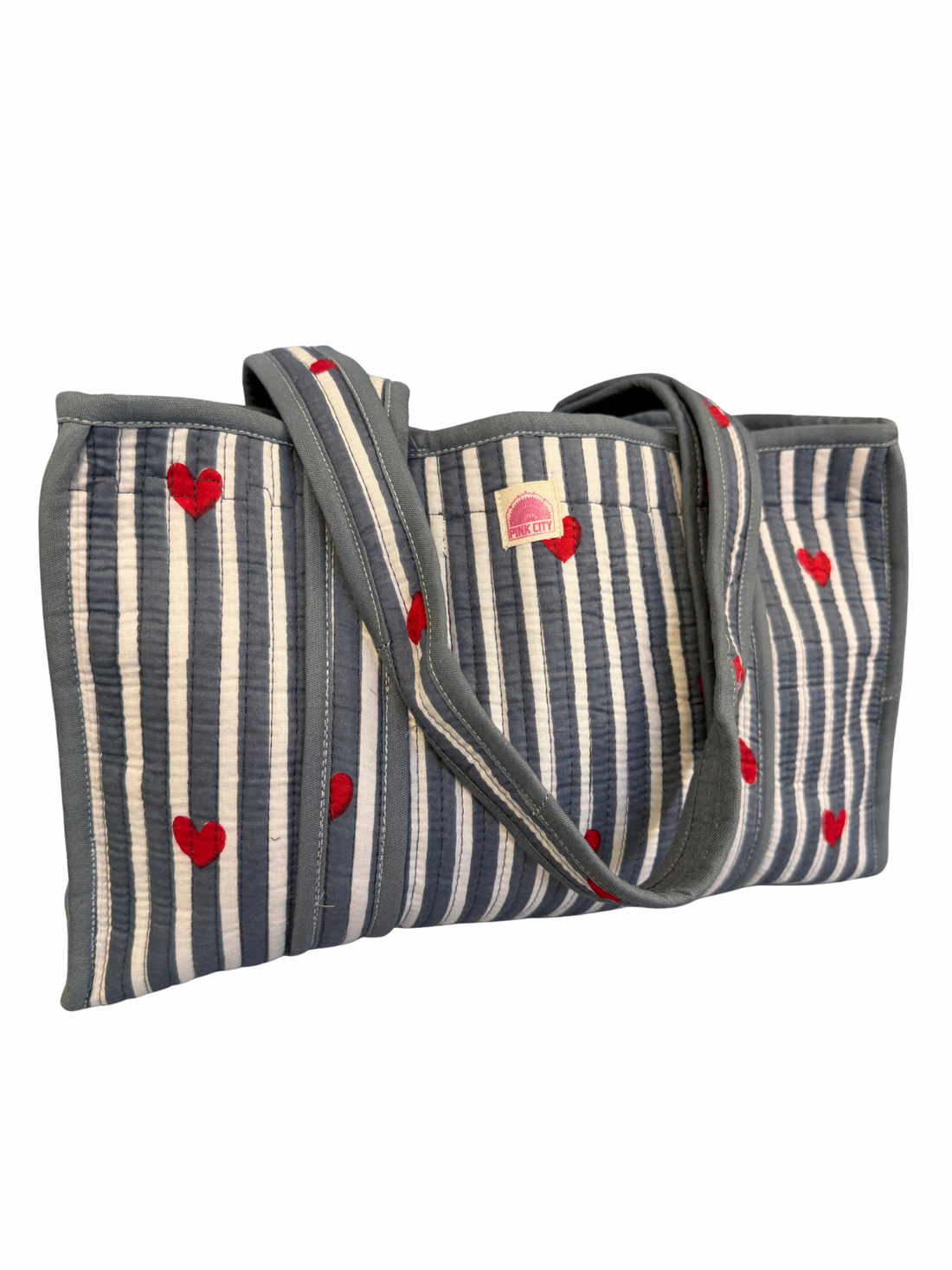 Blue Striped Heart Midi Tote