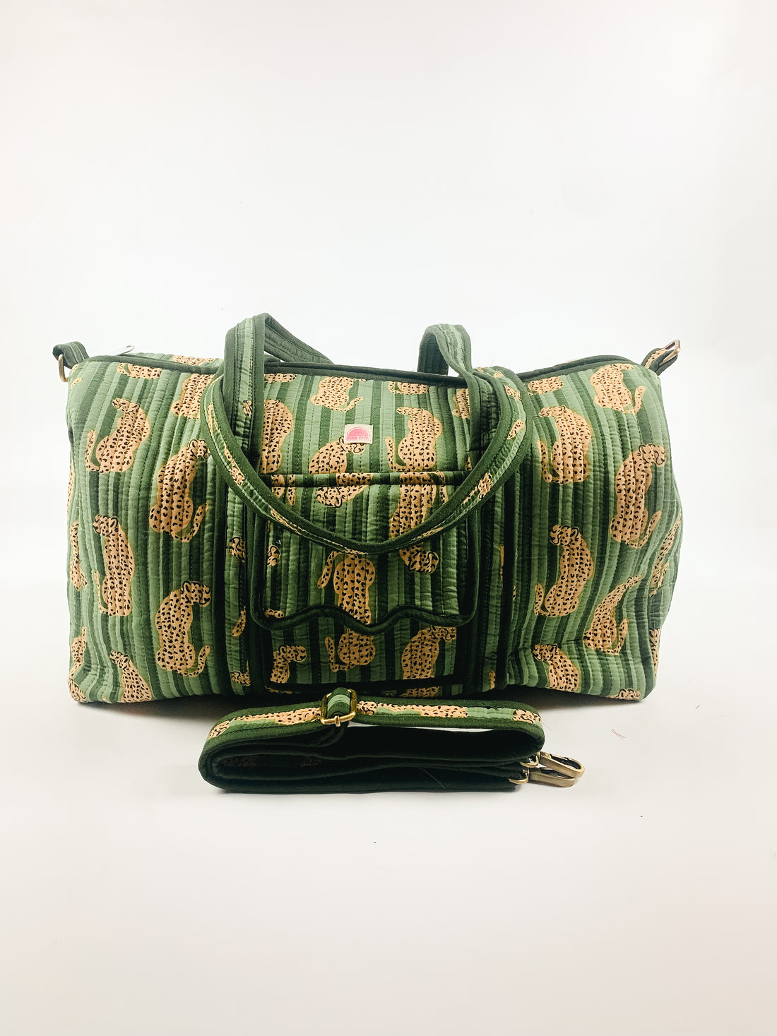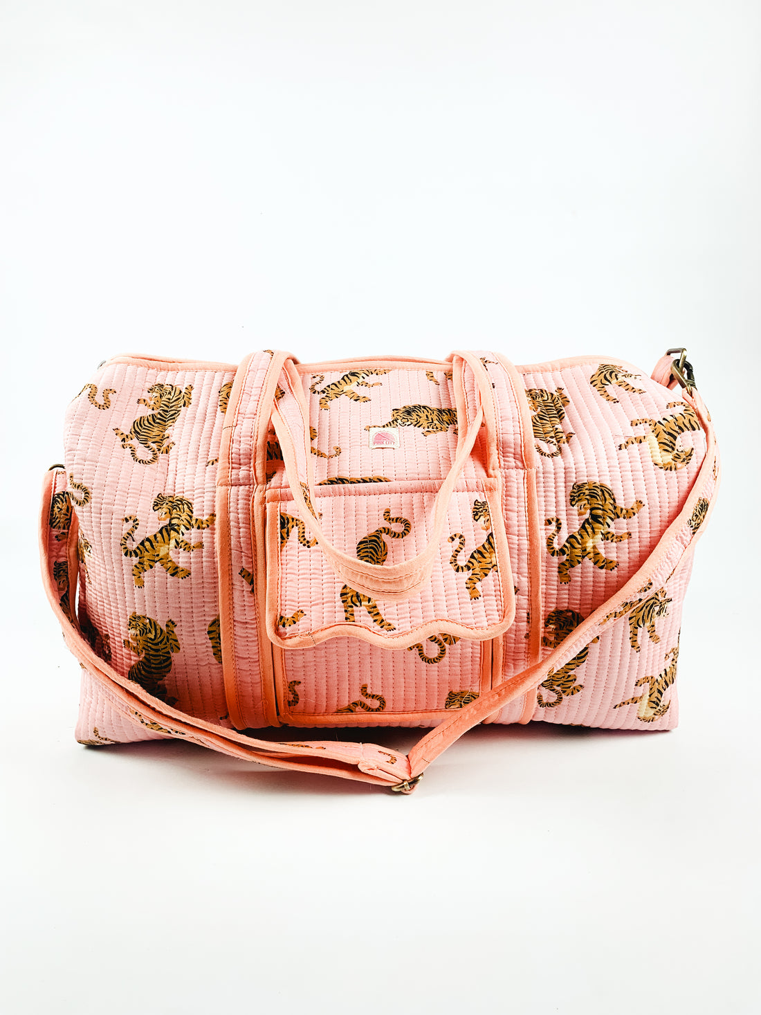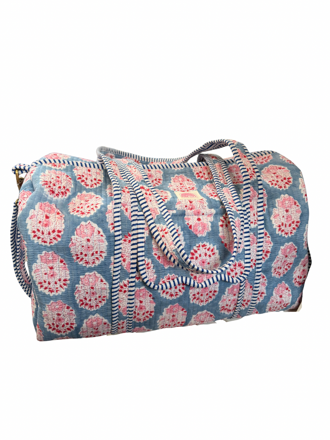 Handmade in Jaipur from 100% cotton, our quilted duffles feature bold block-printed designs with a roomy yet lightweight shape. Built with sturdy top handles and a comfortable shoulder strap, they’re the ultimate grab-and-go bag – whether it’s an overnight stay, the kids’ weekend away, a gym or swim session, or even as carry-on for your travels. Simple, practical and stylish, these duffles are made to keep up with every adventure.