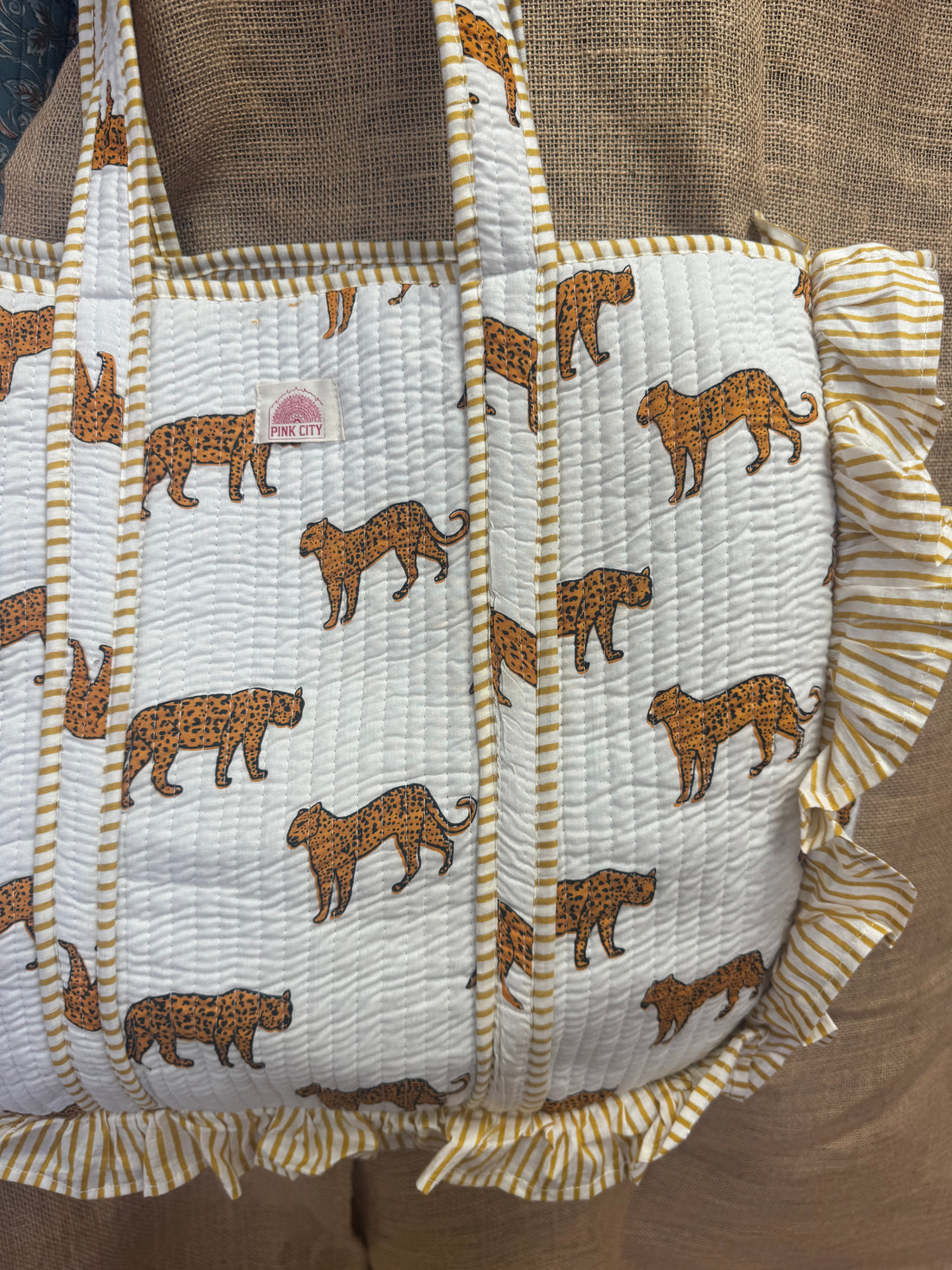 White Leopard Frill Tote Fresh and bold — our White Leopard Frill Tote features hand...