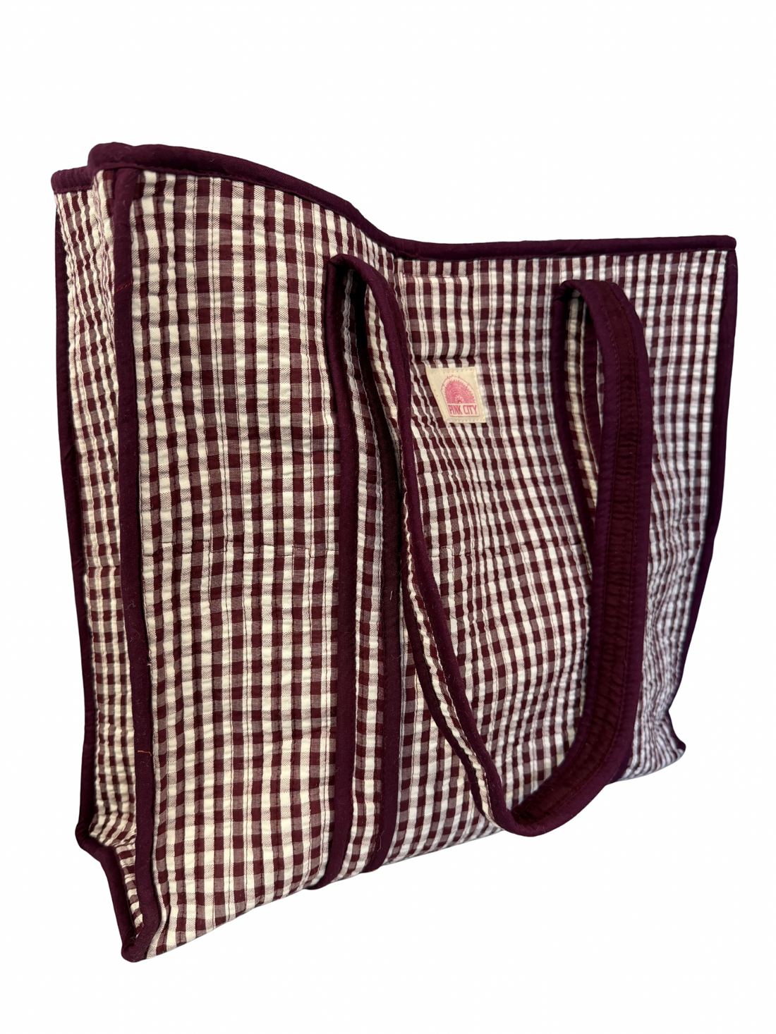 Burgundy Gingham Tote