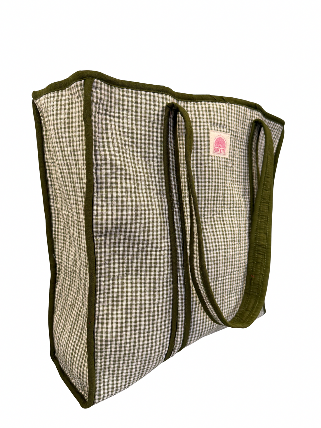 Green Gingham Tote Bag