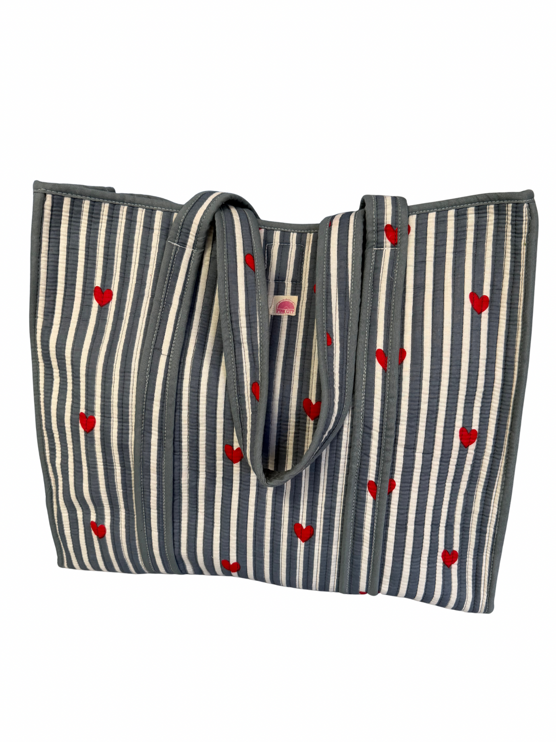 Blue Stripe Heart Tote