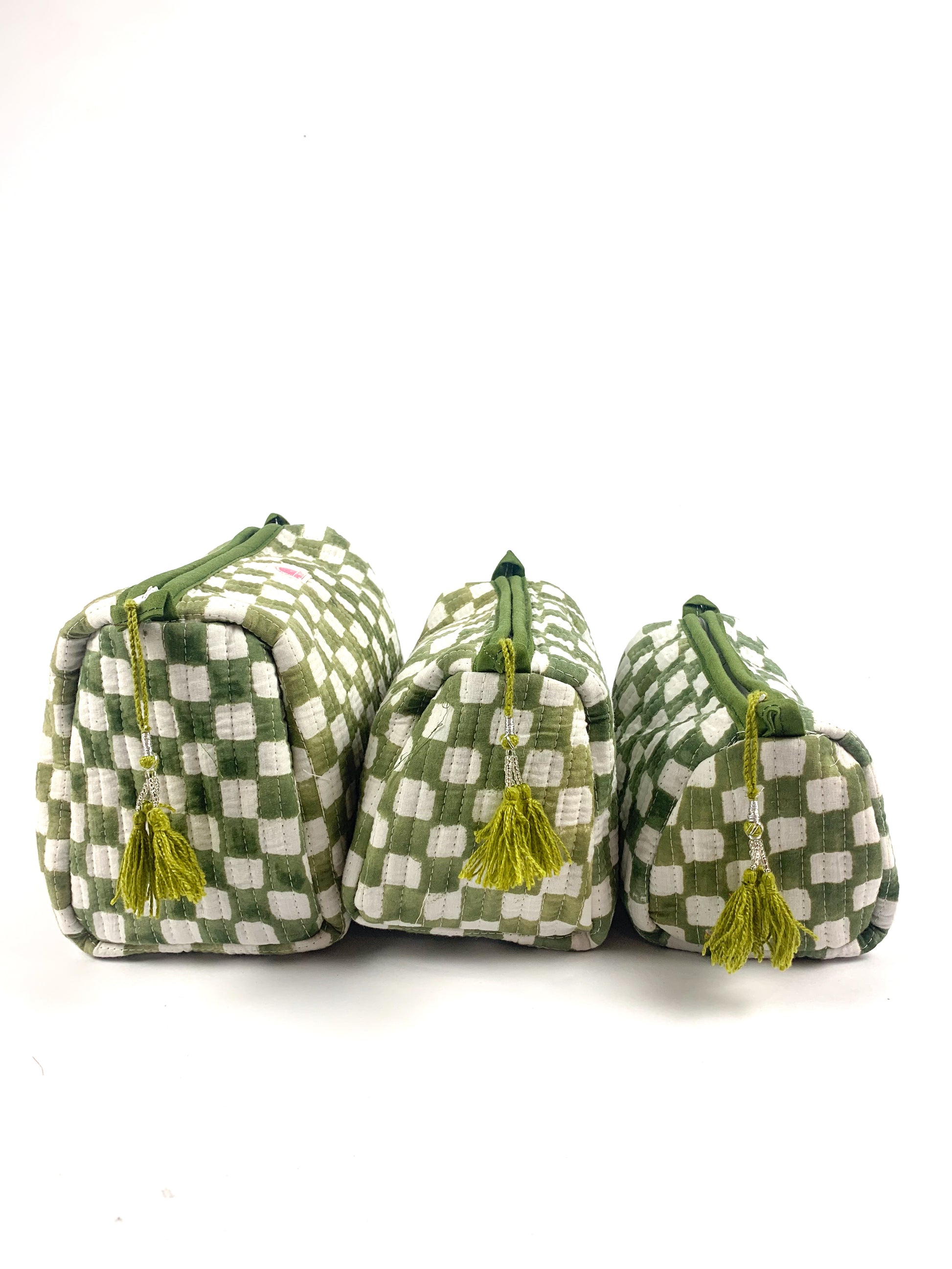 Green Chequered Set of 3 Washbags