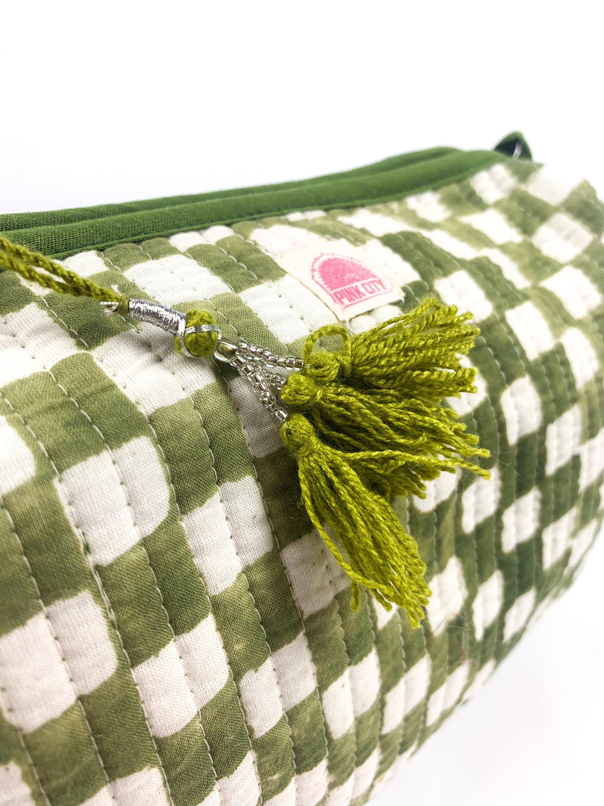 Our block-printed washbags are the perfect travel and everyday staples — handmade in Jaipur from 100% cotton and finished with our signature tassels on every zip.