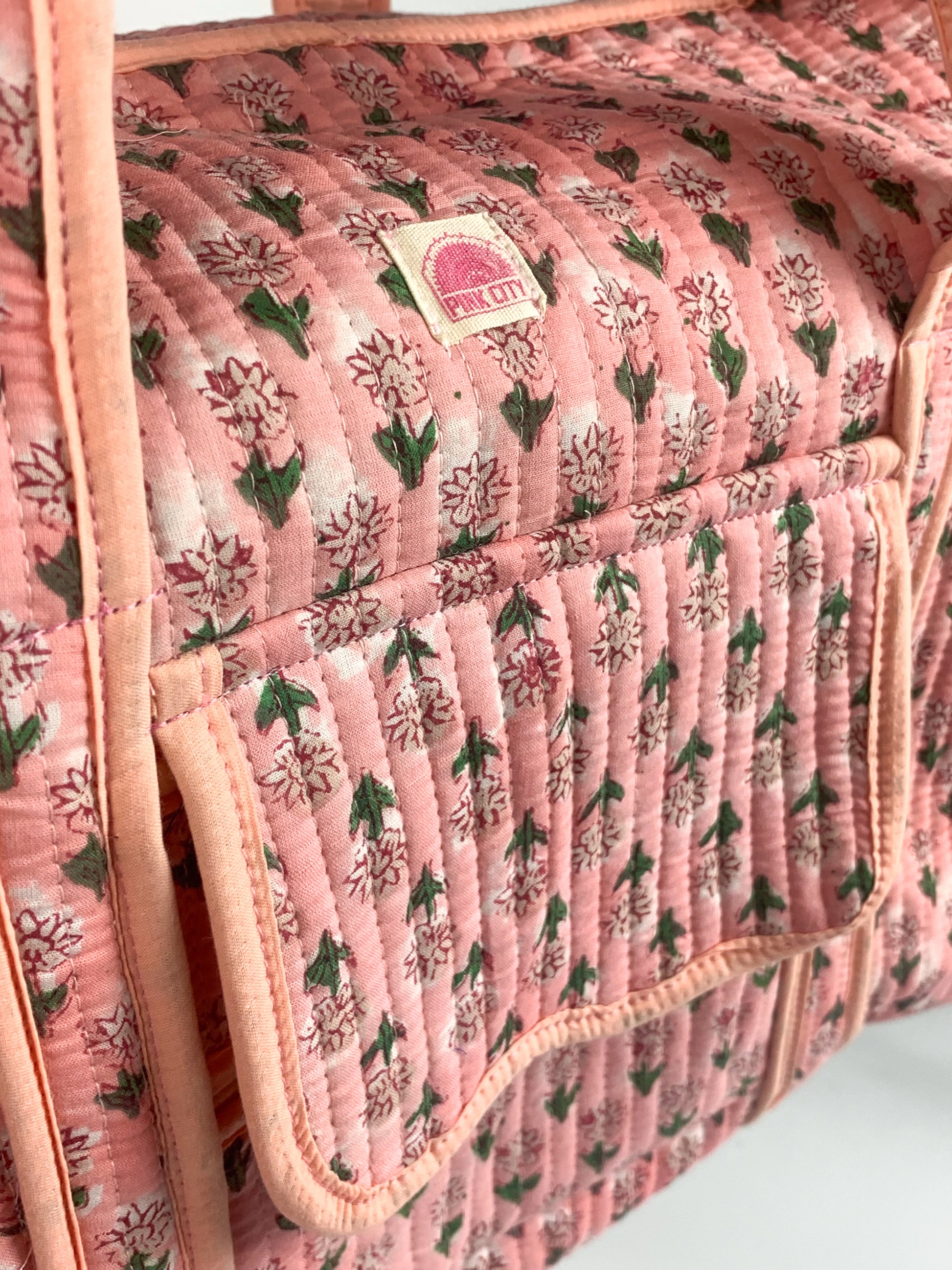 Meet the ultimate block-printed weekend bag, designed for style, practicality, and adventure. Each one is handmade in Jaipur from 100% quilted cotton, featuring traditional block prints that make every piece completely unique.